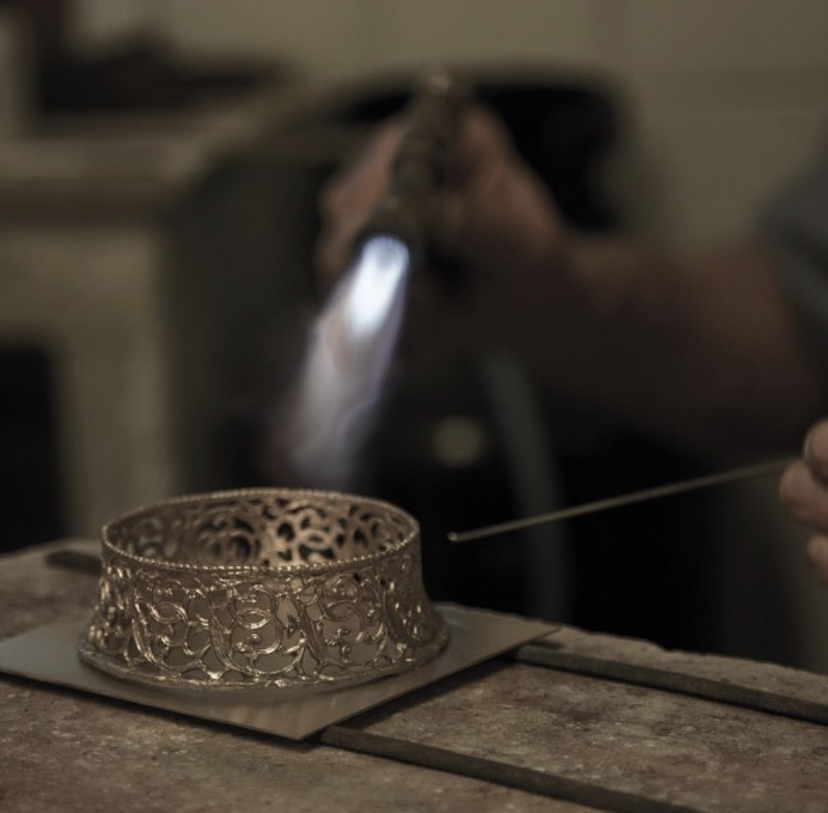 Le opere in metallo stile fiorentino vengono trasformate in piccoli oggetti preziosi in questo studio artigianale.